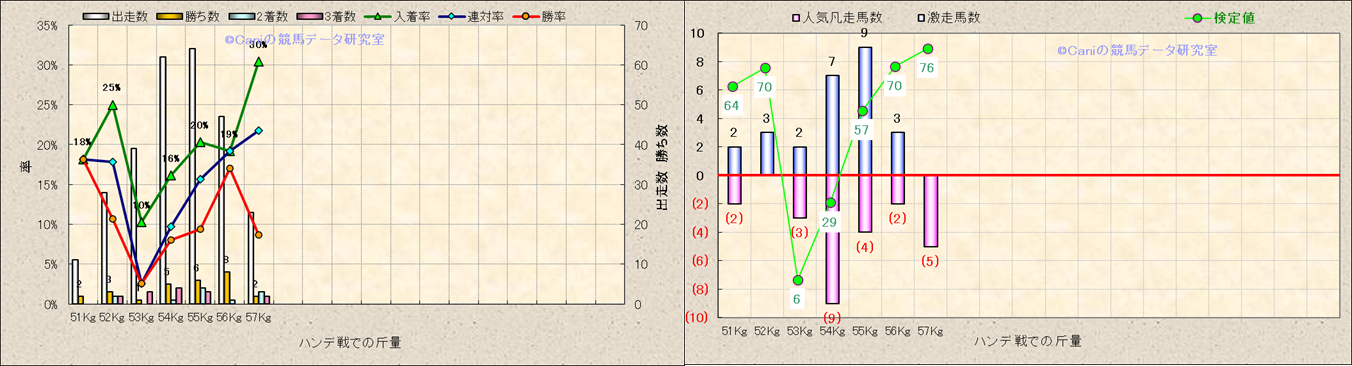 ハンデ戦での斤量別解析 |
