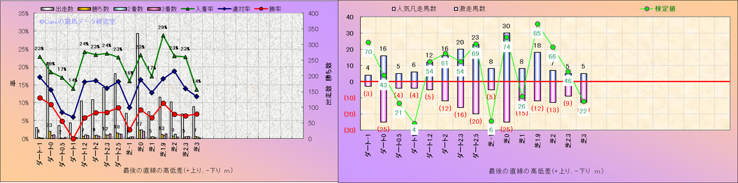 コース、最後の直線の高低差別解析(平地)-近3年- |