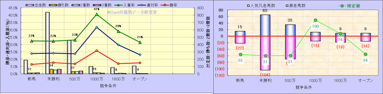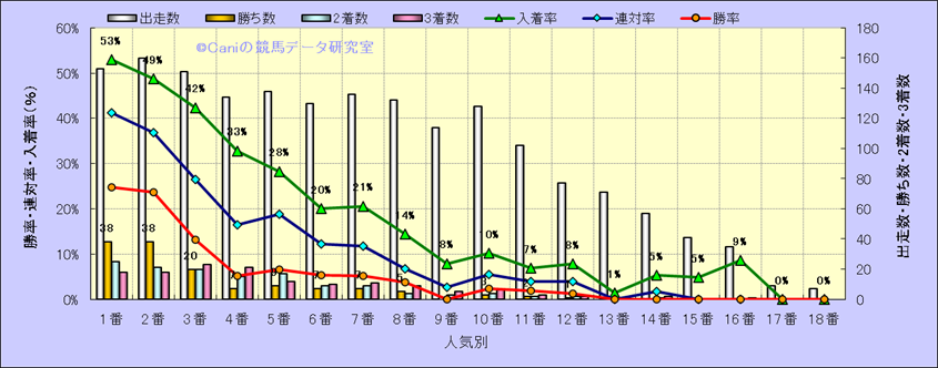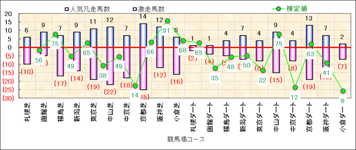 人気凡走馬:1-3番人気で着外、激走馬:5-18番人気で入着 |