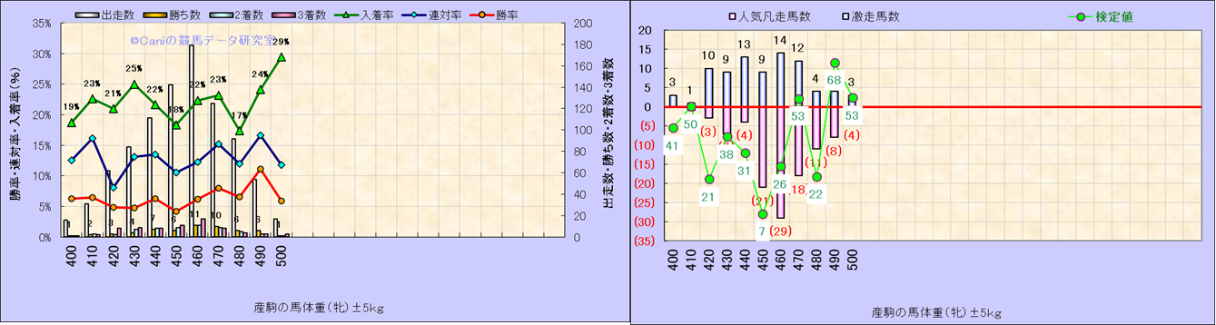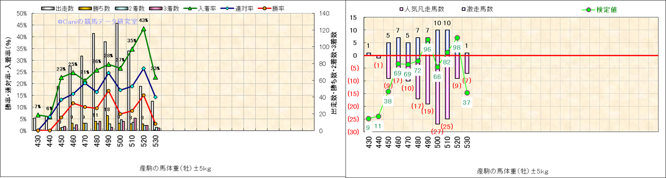 牡産駒の体重別成績-近3年- |