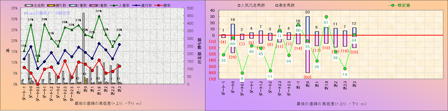 コース、最後の直線の高低差別解析(平地)-近3年- |