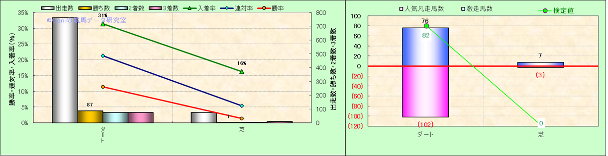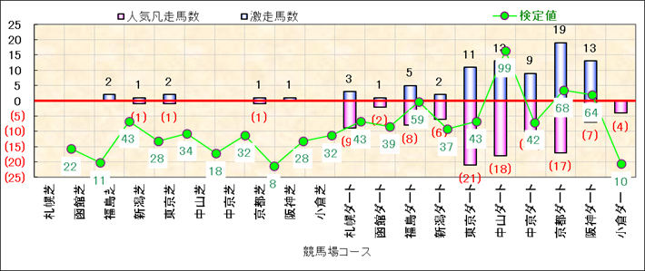 人気凡走馬:1-3番人気で着外、激走馬:5-18番人気で入着 |