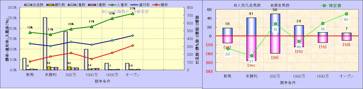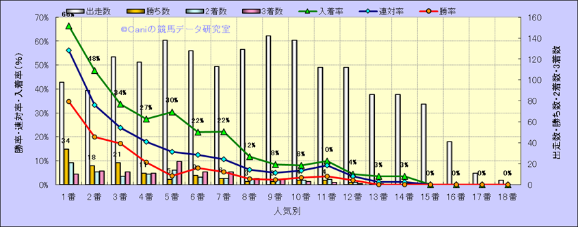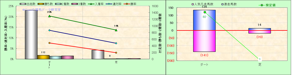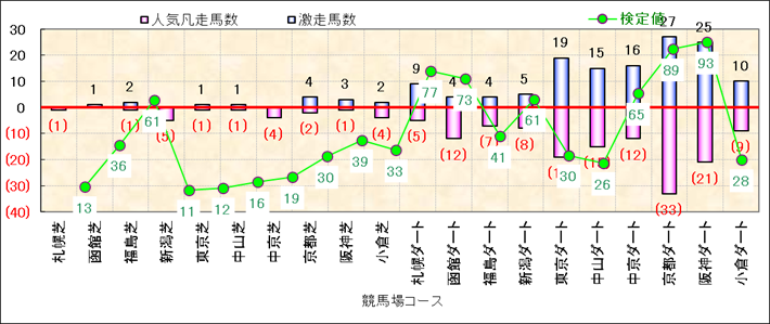 人気凡走馬:1-3番人気で着外、激走馬:5-18番人気で入着 |