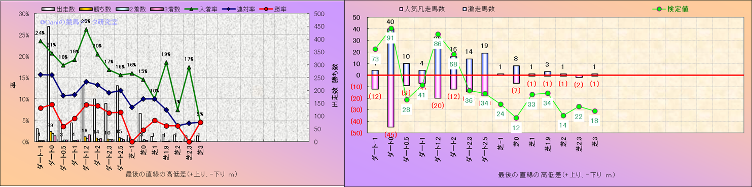 コース、最後の直線の高低差別解析(平地)-近3年- |