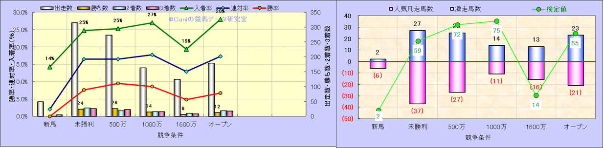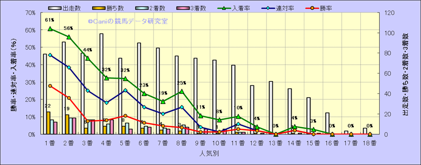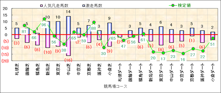 人気凡走馬:1-3番人気で着外、激走馬:5-18番人気で入着 |