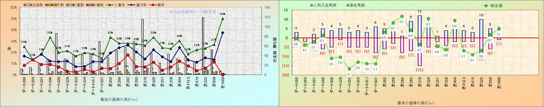 コース、最後の直線の長さ別解析(平地)-近3年- |
