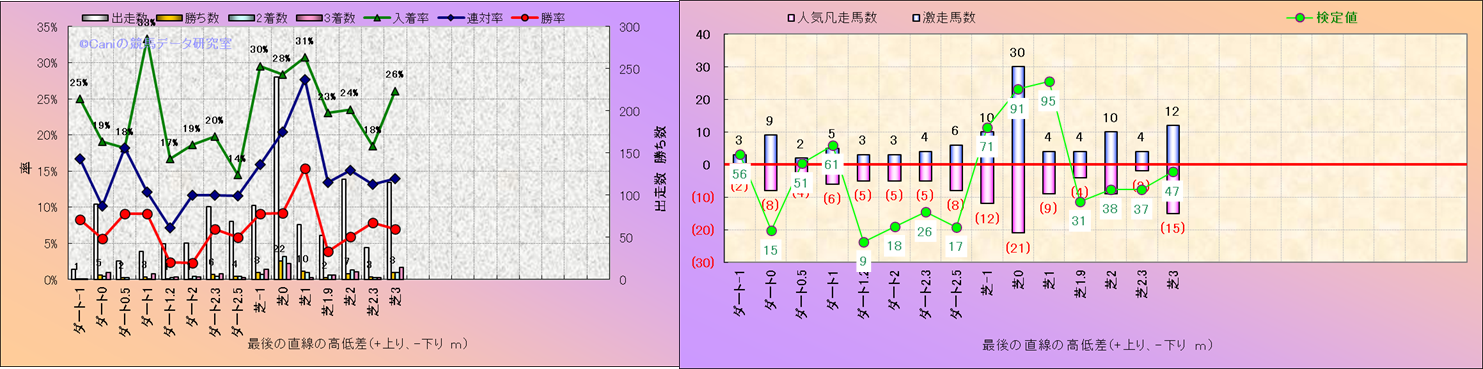 コース、最後の直線の高低差別解析(平地)-近3年- |