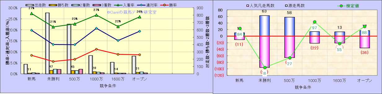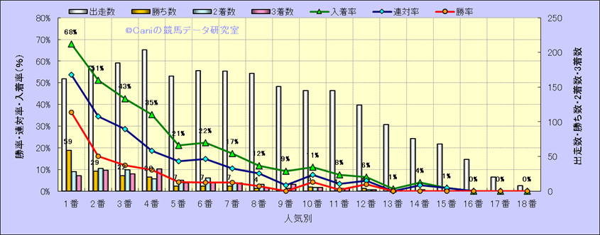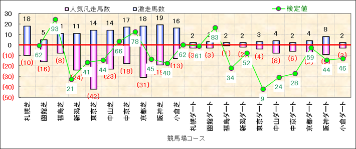 人気凡走馬:1-3番人気で着外、激走馬:5-18番人気で入着 |