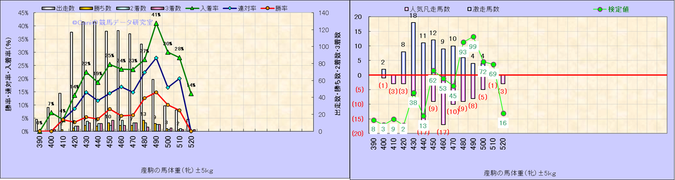 牡産駒の体重別成績-近3年- |