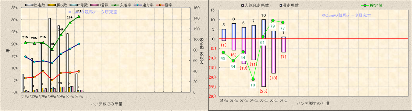 ハンデ戦での斤量別解析 |