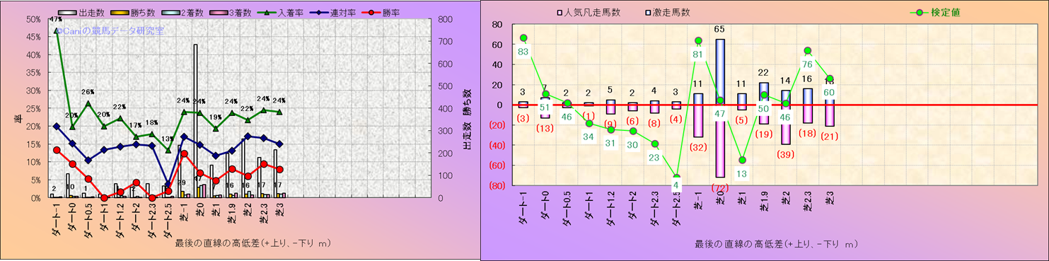 コース、最後の直線の高低差別解析(平地)-近3年- |