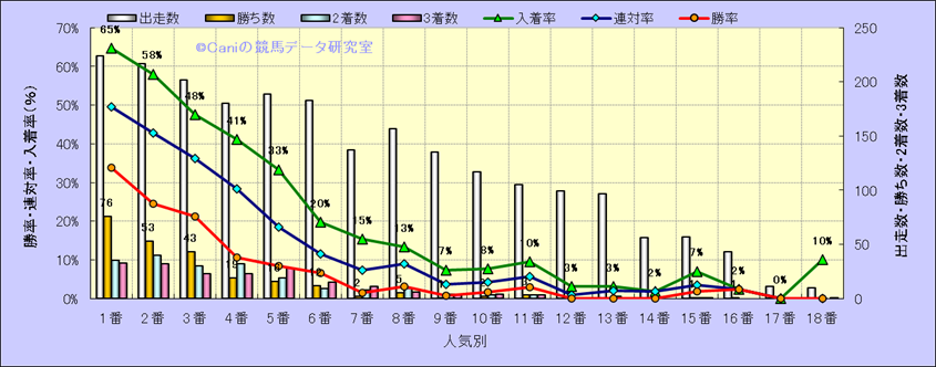 人気凡走馬:1-3番人気で着外、激走馬:5-18番人気で入着 |