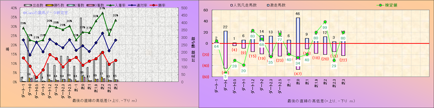 コース、最後の直線の高低差別解析(平地)-近3年- |