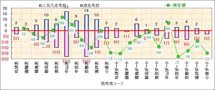人気凡走馬:1-3番人気で着外、激走馬:5-18番人気で入着 |