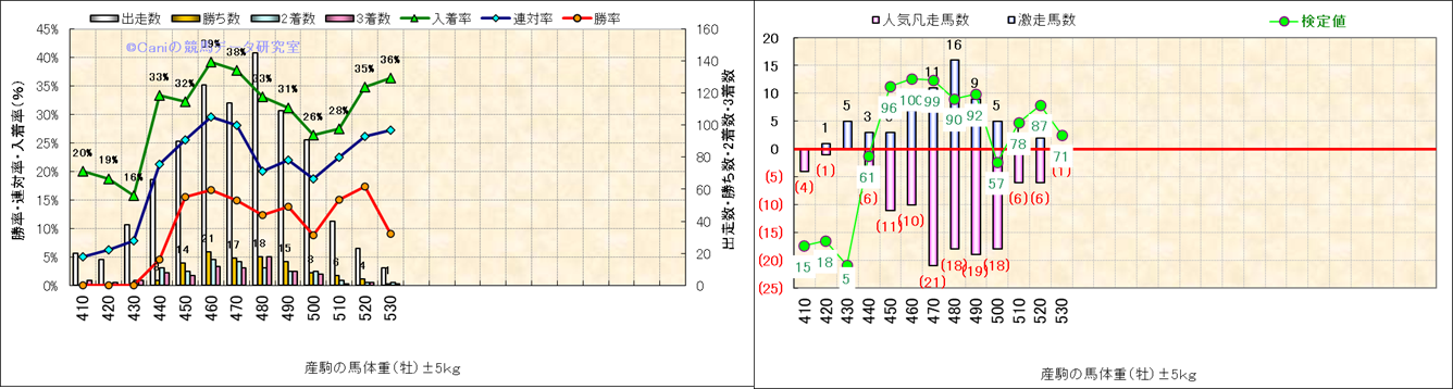 牡産駒の体重別成績-近3年- |