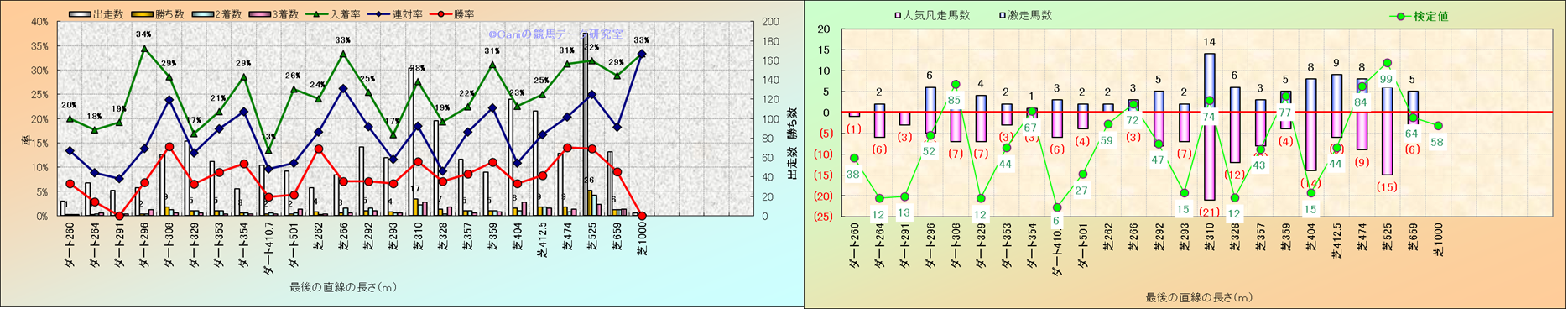 コース、最後の直線の長さ別解析(平地)-近3年- |
