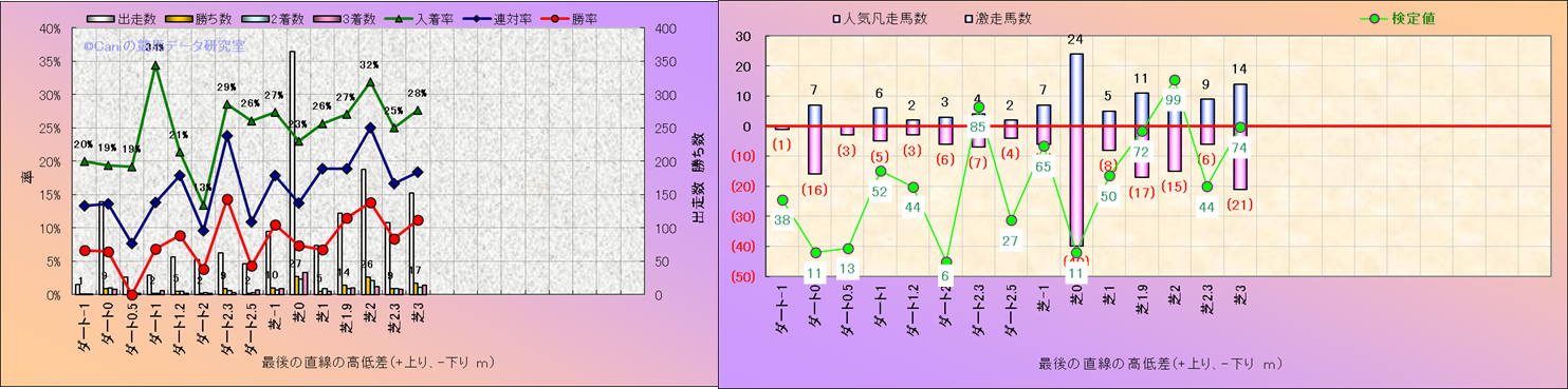コース、最後の直線の高低差別解析(平地)-近3年- |