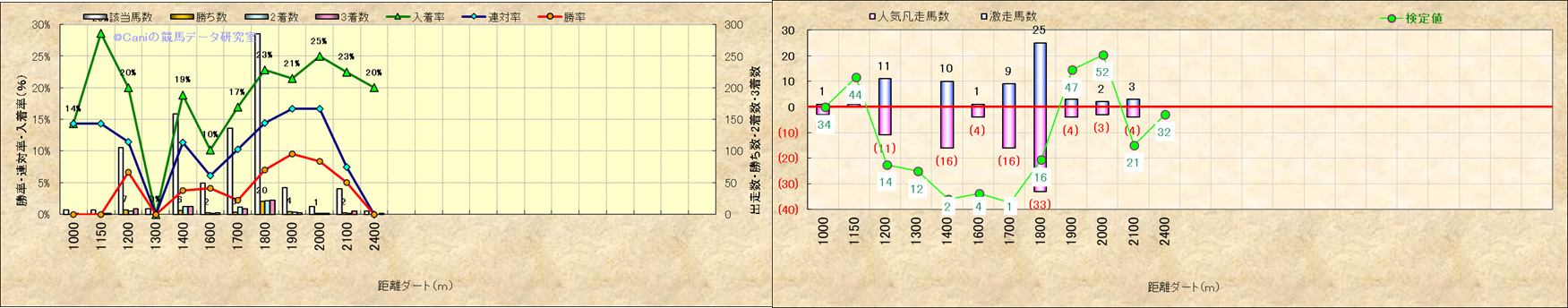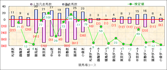 人気凡走馬:1-3番人気で着外、激走馬:5-18番人気で入着 |
