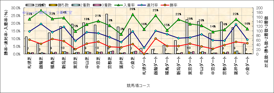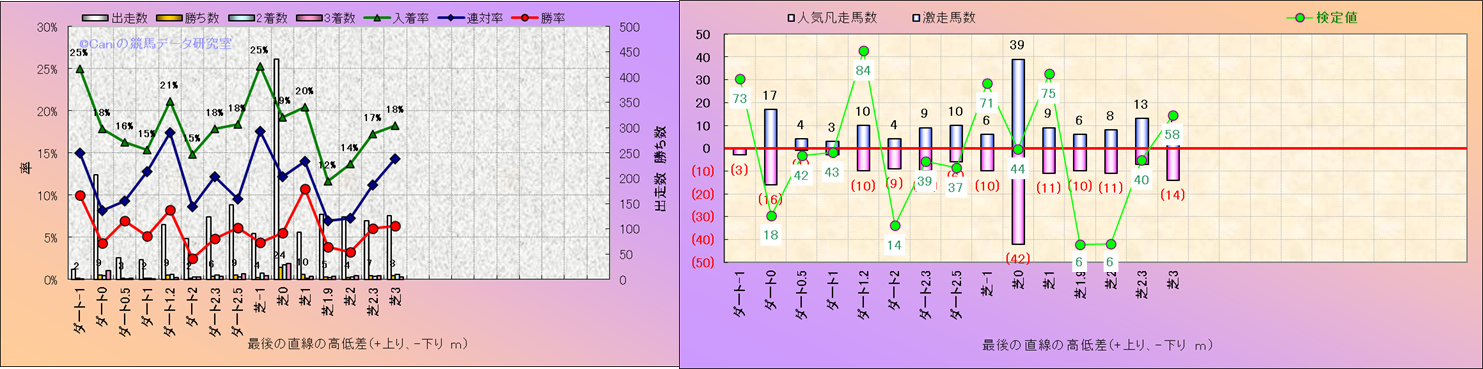 コース、最後の直線の高低差別解析(平地)-近3年- |