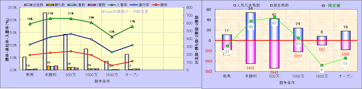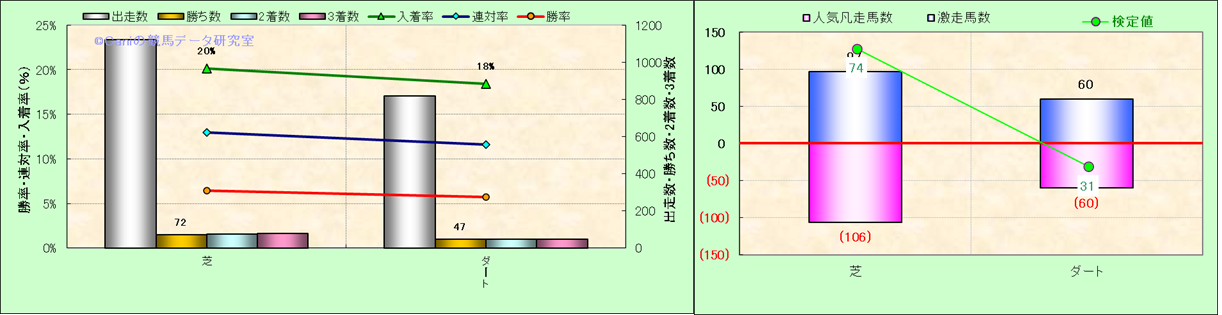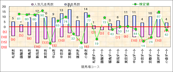人気凡走馬:1-3番人気で着外、激走馬:5-18番人気で入着 |