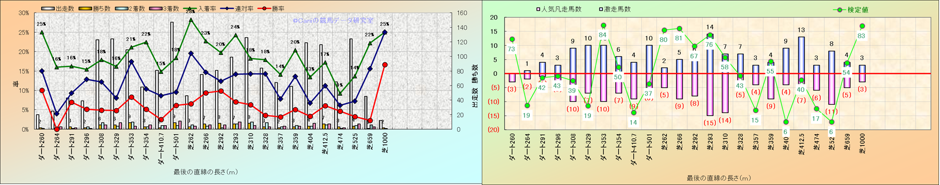 コース、最後の直線の長さ別解析(平地)-近3年- |