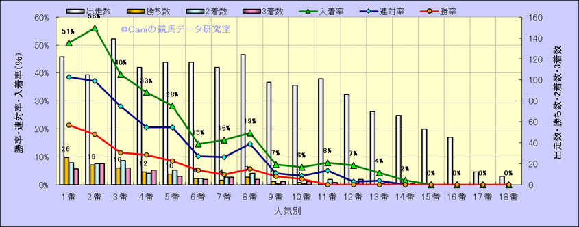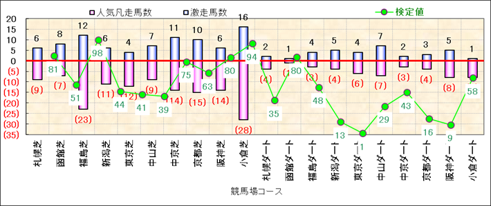 人気凡走馬:1-3番人気で着外、激走馬:5-18番人気で入着 |