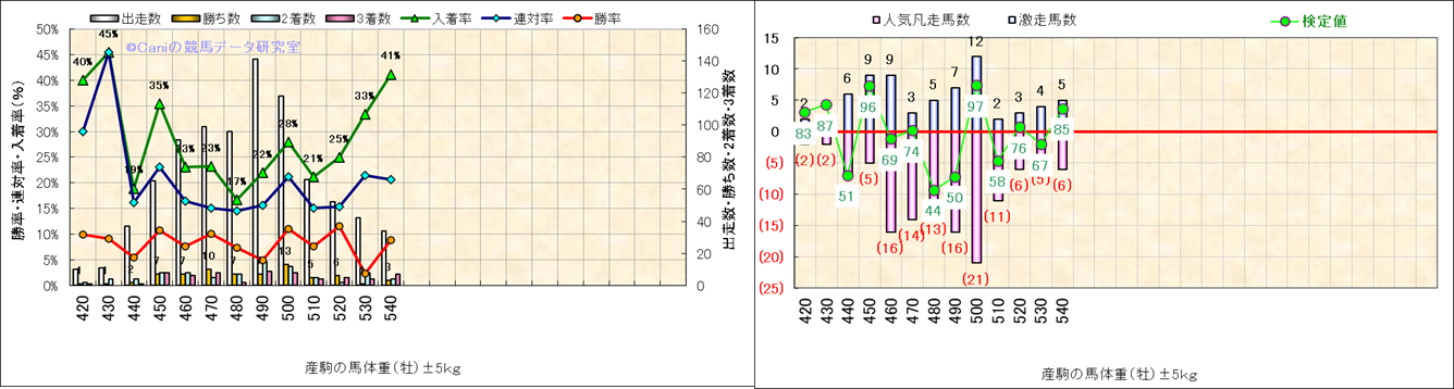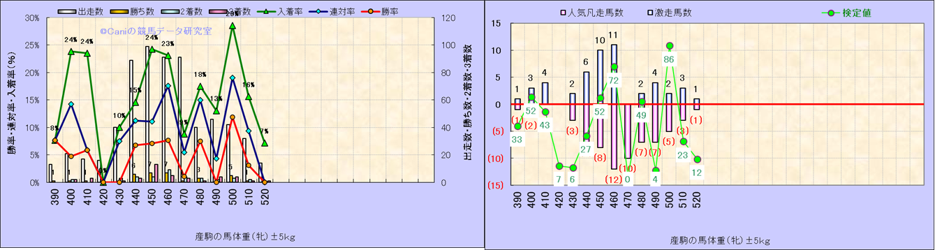 牡産駒の体重別成績-近3年- |