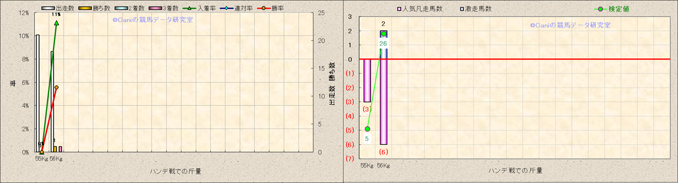 ハンデ戦での斤量別解析 |