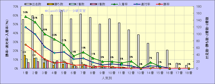 人気凡走馬:1-3番人気で着外、激走馬:5-18番人気で入着 |