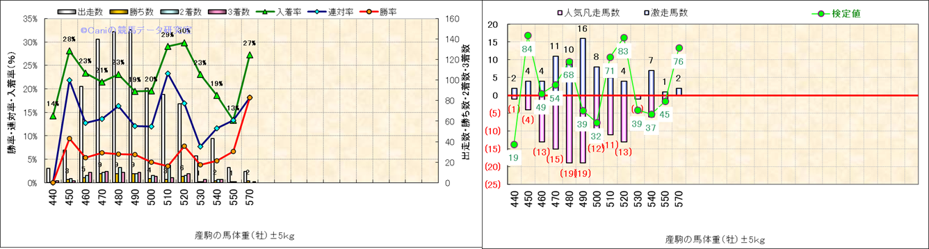牡産駒の体重別成績-近3年- |