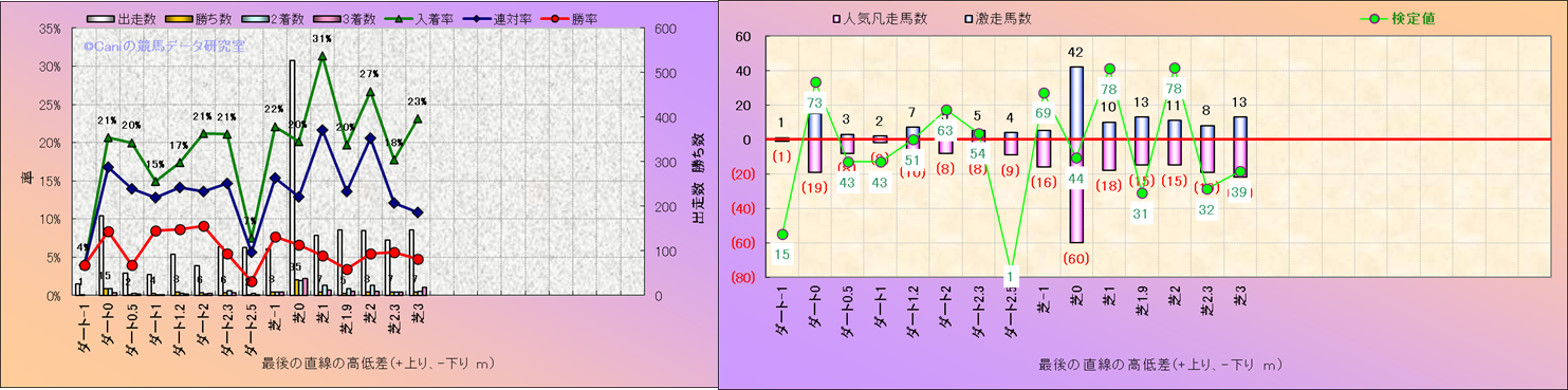 コース、最後の直線の高低差別解析(平地)-近3年- |