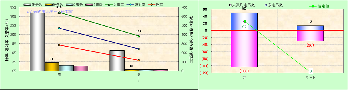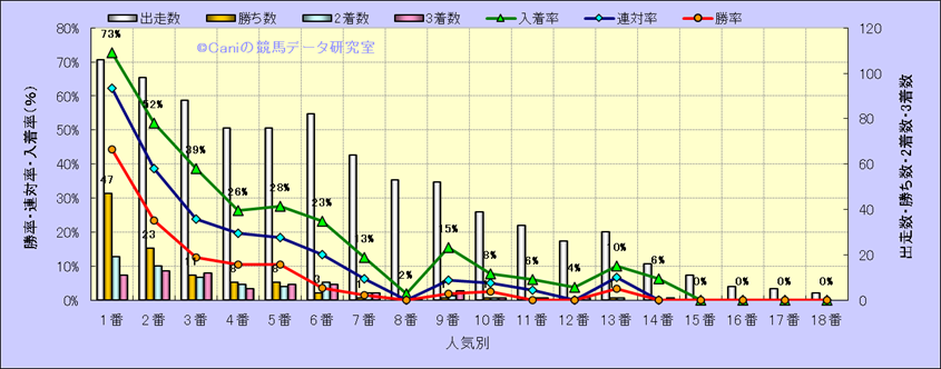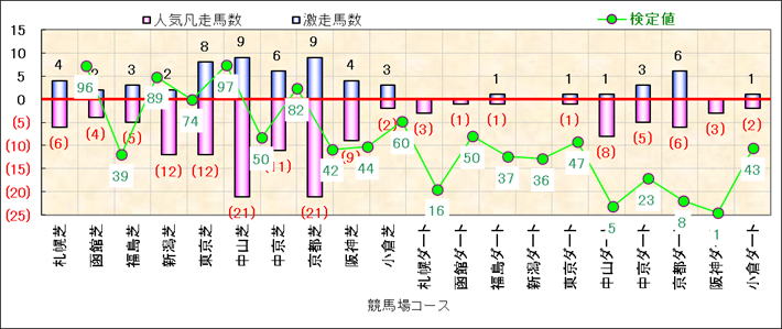 人気凡走馬:1-3番人気で着外、激走馬:5-18番人気で入着 |