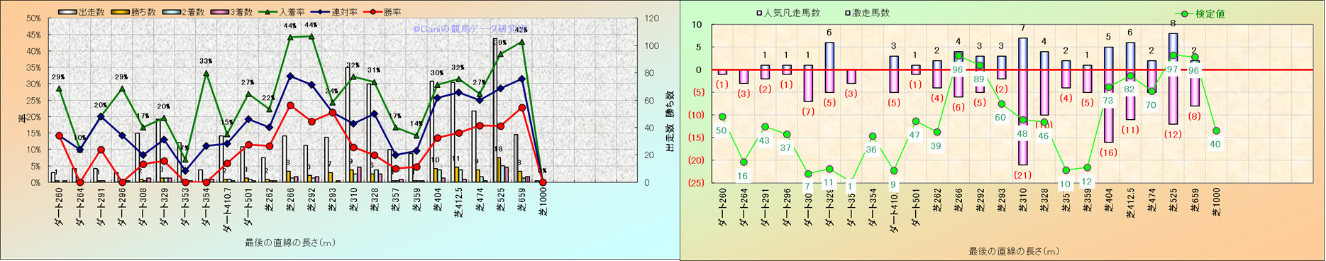 コース、最後の直線の長さ別解析(平地)-近3年- |