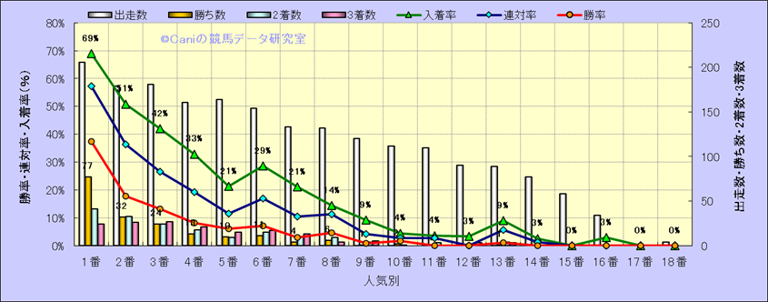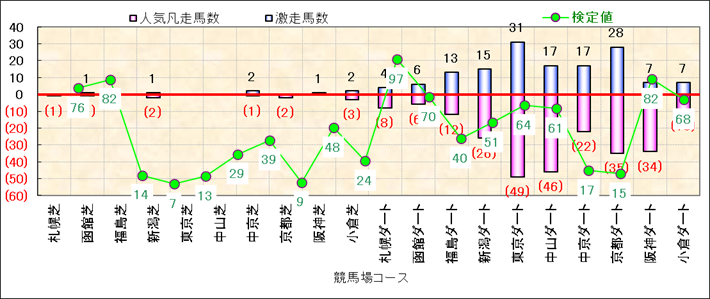 人気凡走馬:1-3番人気で着外、激走馬:5-18番人気で入着 |