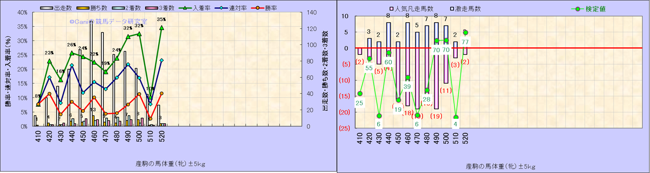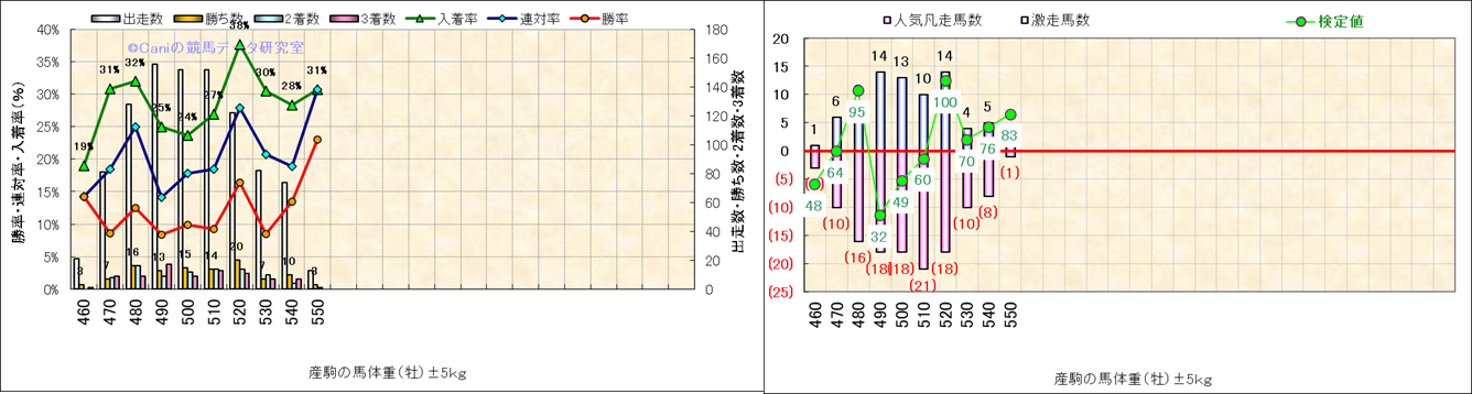 牡産駒の体重別成績-近3年- |