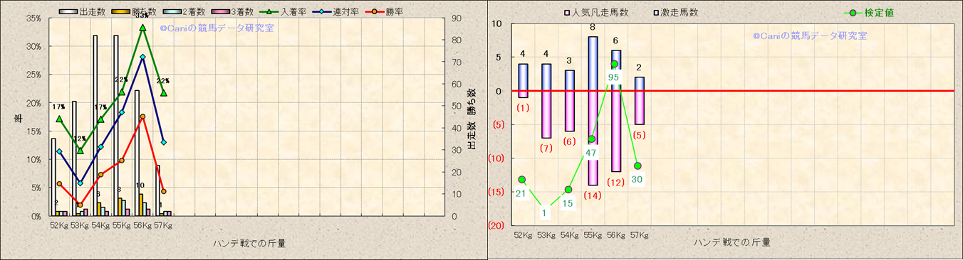 ハンデ戦での斤量別解析 |