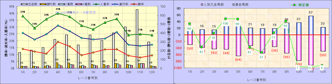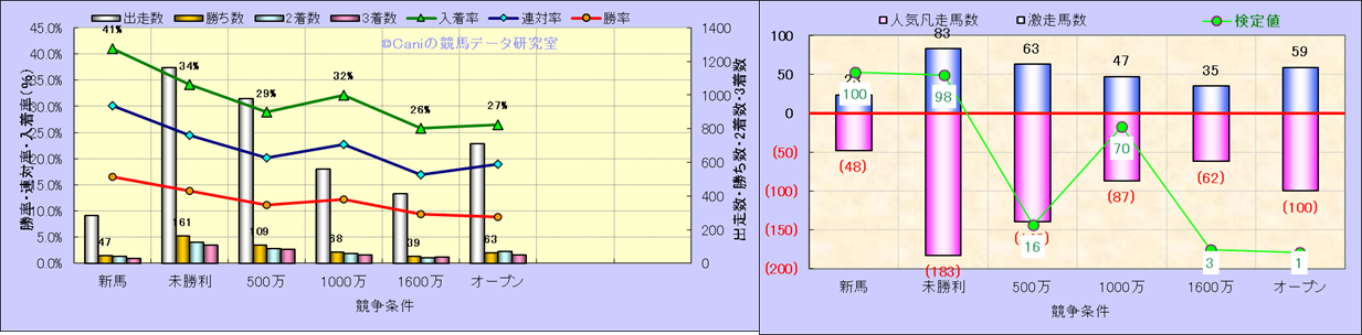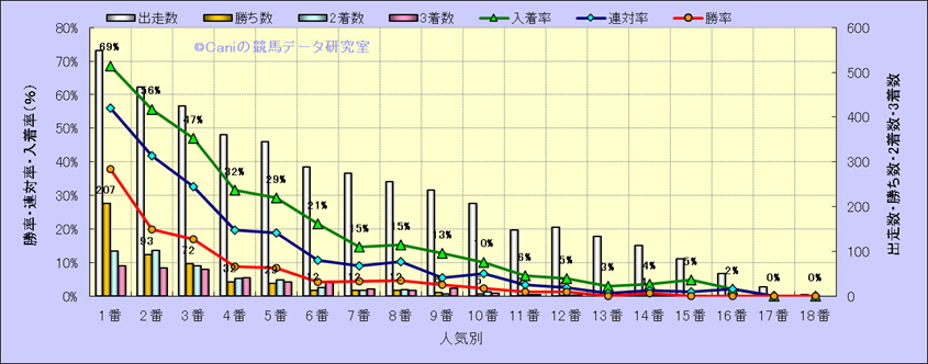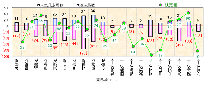 人気凡走馬:1-3番人気で着外、激走馬:5-18番人気で入着 |