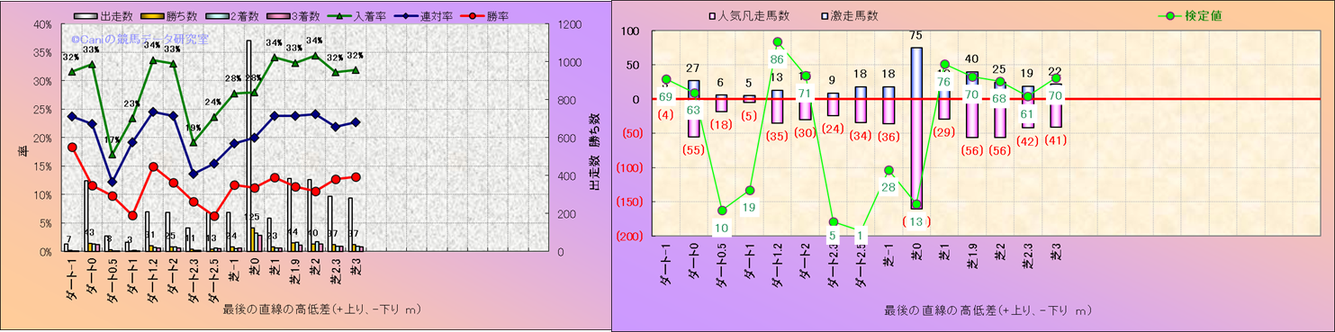 コース、最後の直線の高低差別解析(平地)-近3年- |