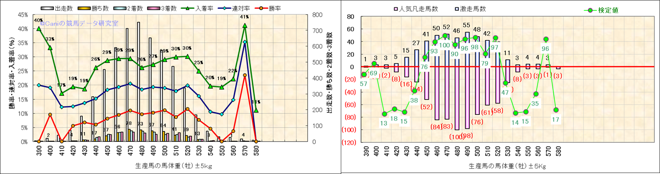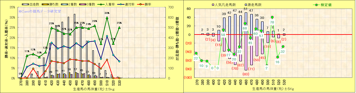 牡産駒の体重別成績-近3年- |