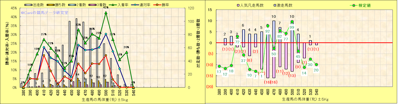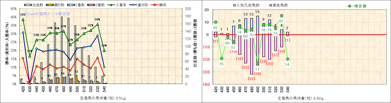 牡産駒の体重別成績-近3年- |