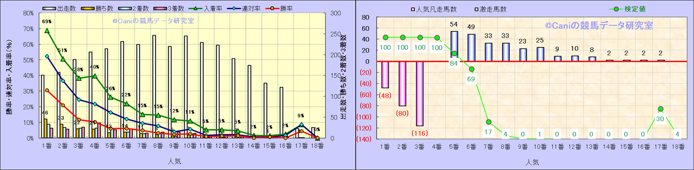 人気凡走馬:1-3番人気で着外、激走馬:5-18番人気で入着 |