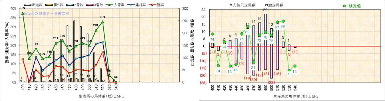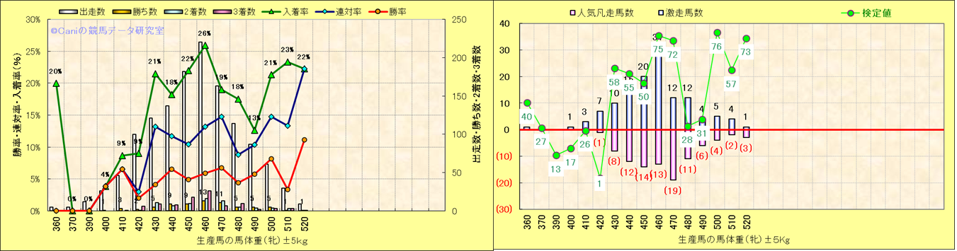 牡産駒の体重別成績-近3年- |