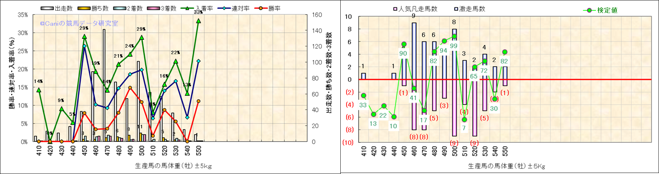 牡産駒の体重別成績-近3年- |