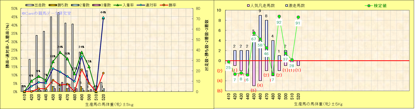 牝産駒の体重別成績-近3年- |