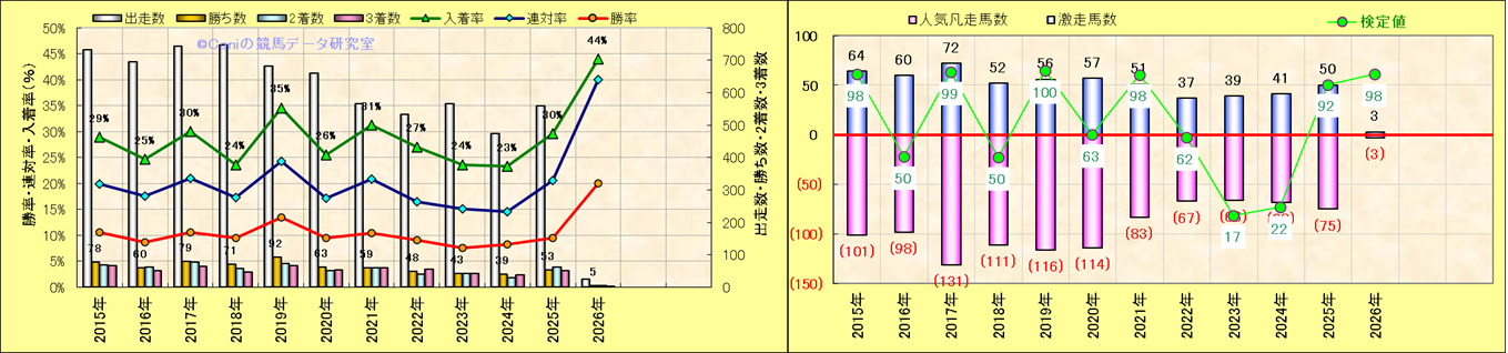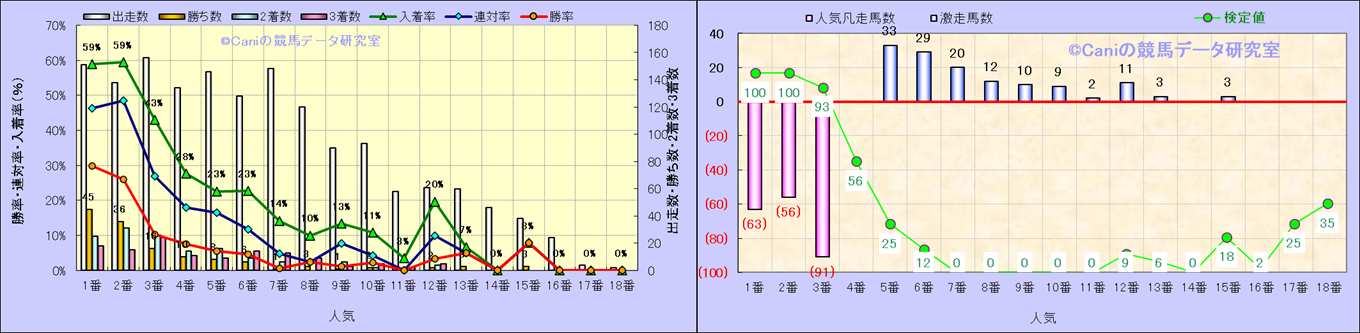 人気凡走馬:1-3番人気で着外、激走馬:5-18番人気で入着 |