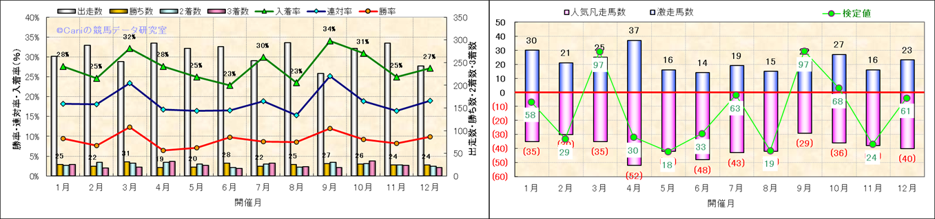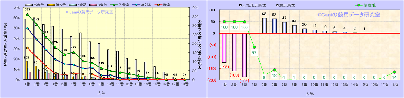 人気凡走馬:1-3番人気で着外、激走馬:5-18番人気で入着 |