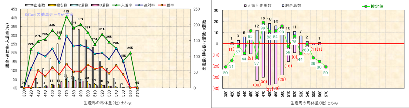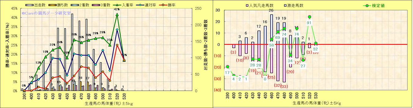 牡産駒の体重別成績-近3年- |