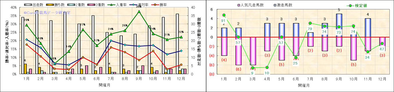 人気凡走馬:1-3番人気で着外、激走馬:5-18番人気で入着 |