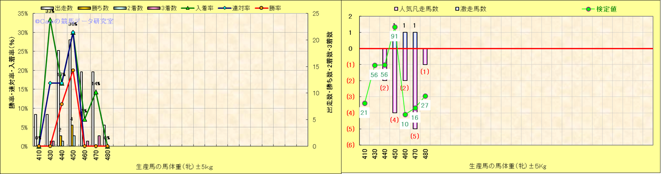 牝産駒の体重別成績-近3年- |
