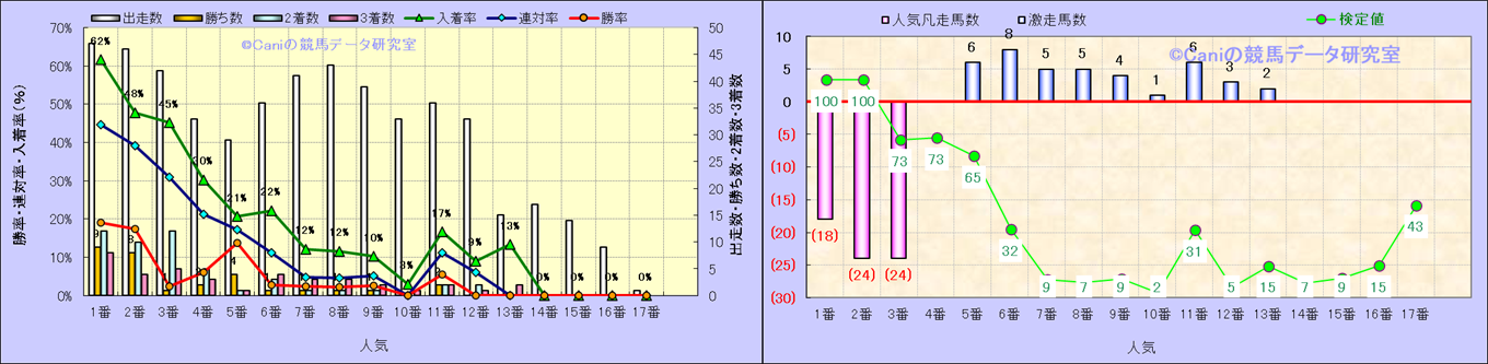 人気凡走馬:1-3番人気で着外、激走馬:5-18番人気で入着 |